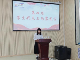 2021级贸易经济2班的王雨露同学作为获奖学生代表发言,她首先感谢了学院对她实践成果的认可,分享了她的实践过程及收获,最后总结说到:“理论知识固然重要,但实践才是那把开启真知大门的钥匙。唯有亲身踏入社会的广阔舞台,才能真切地察觉到自身的局限与不足,从而激发持续学习、不懈进步的动力。”